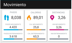 Si tu dispositivo monitoriza deportes, los pasos, calorías y distancias se sumarán a tus totales de movimiento, para que tengas una visión global de todo.