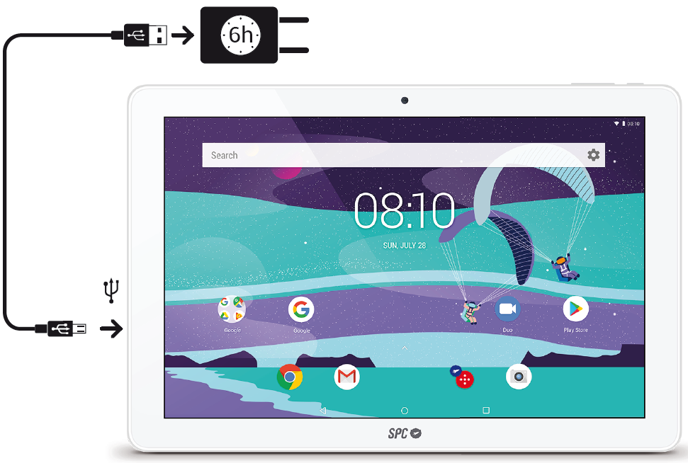 En ocasiones, si la batería está MUY descargada, es posible que tras conectar el cargador a la red eléctrica, tu tablet necesite desde varios minutos hasta 2 horas para comenzar a cargarse. No te preocupes, ya que trascurridos este tiempo, la batería alcanzará el nivel de batería mínimo para el arranque.