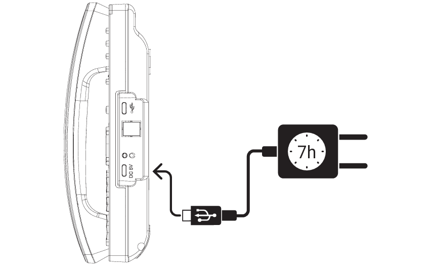 Para cargar la batería por completo, carga la batería durante 7 horas. El indicador luminoso, que se encuentra en la parte superior derecha del teléfono, será de color rojo si está cargándose, y de color verde si la batería está totalmente cargada.