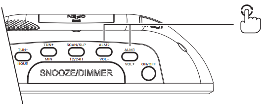 Para establecer la segunda alarma, ALM2, repite los pasos anteriores pero con la tecla ALM2/VOL-.