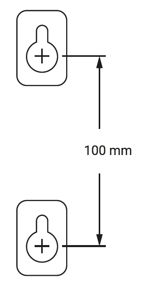 Cet équipement peut être facilement monté sur un mur ou accroché au mur. Pour ce faire, percez des trous dans le mur à environ 100mm (10cm) de distance, comme indiqué sur le schéma de montage mural ci-dessous.