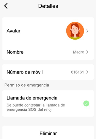 - Appel d'urgence (SOS) : Il est possible de sélectionner que le contact soit d'urgence.