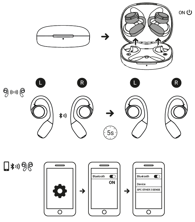 Pour effectuer une première connexion aux SPC ETHER 2 SENSE via Bluetooth, tu dois activer la connexion Bluetooth sur ton appareil. Une fois cette connexion activée, tu dois chercher tes SPC ETHER 2 SENSE dans la liste des appareils Bluetooth détectés. Une fois sélectionnés, les écouteurs émettront un message vocal de connexion établie.