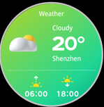Si l'horloge a obtenu la position de votre téléphone, vous pouvez consulter les prévisions météorologiques actualisées pour aujourd'hui et les 6 prochains jours.Les heures de lever et de coucher du soleil sont également affichées.