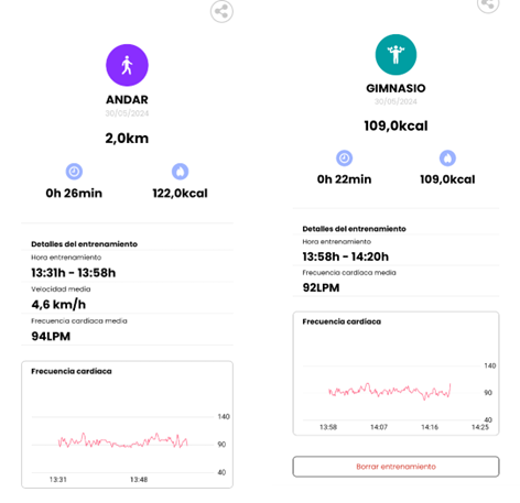 Si votre wearable suit les sports, SMART YOU enregistrera chacune de vos sessions sportives et vous pourrez naviguer à travers elles pour voir les détails sur la carte Entraînements.