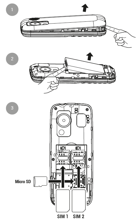 Insérez la ou les carte(s) SIM (format MiniSIM) dans l'emplacement indiqué, en alignant les contacts dorés du téléphone et de la ou des carte(s).