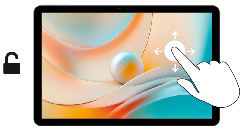 Déverrouiller votre tablette est très simple : il suffit de faire glisser votre doigt sur l'écran allumé, comme illustré ci-dessous.