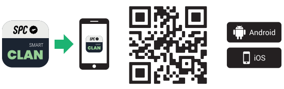 - Télécharge l'application SPC SMART CLAN. Pour cela, tu peux scanner le code présent dans ton guide rapide ou rechercher “SPC SMART CLAN” dans le Store correspondant.