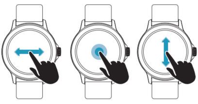 Pour naviguer entre les différents écrans de votre montre, balayez verticalement, horizontalement et/ou touchez l’écran.