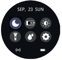 En balayant de gauche à droite sur la page d’accueil, accédez au menu de raccourci de toutes les fonctions de la montre. Vous pouvez changer le type de menu dans Paramètres.