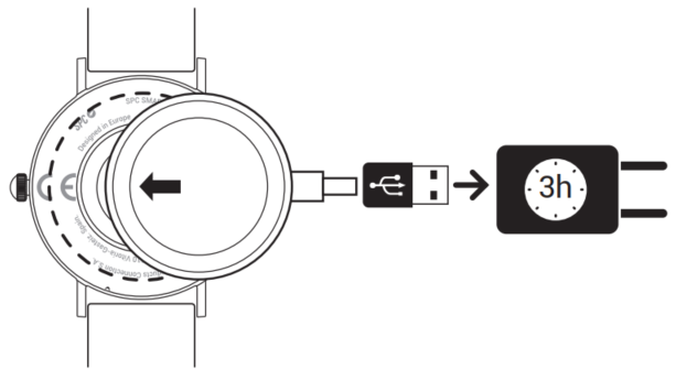 Cette montre dispose d'une recharge sans fil, par induction. Le système de recharge est spécifique à ce modèle, n'utilise pas de chargeurs sans fil d'autres appareils.