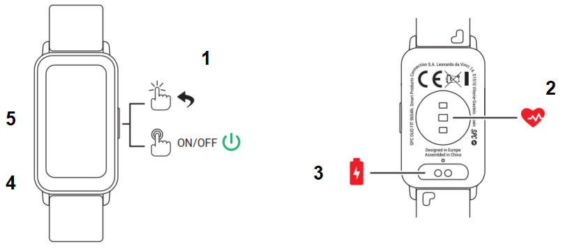 Un appui long allume et éteint la montre. Une fois allumée, un appui court allume ou éteint l'écran. Dans un menu, appuie brièvement dessus pour sortir du menu et revenir à l'écran d'accueil, ou pour mettre en pause/reprendre ou arrêter l'activité sportive que tu es en train de faire.