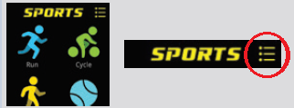 Lorsque vous accédez à un sport, le dernier mode utilisé apparaît en premier. Par exemple, si vous avez effectué le test de Cooper la dernière fois que vous avez sélectionné le mode d’exécution, celui-ci apparaît en premier.