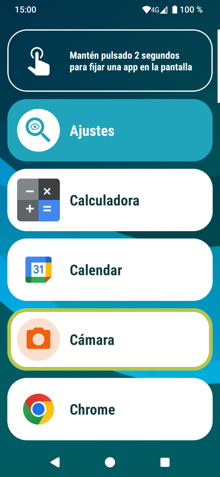 Tu peux modifier, supprimer, désinstaller ou voir les informations des applications du Mode Facile SPC en maintenant chaque icône enfoncée ; tu pourras également déplacer l'appli pour réorganiser le menu à ton goût si tu maintiens enfoncée l'appli et la fais glisser, ainsi que créer des groupes d'applications.