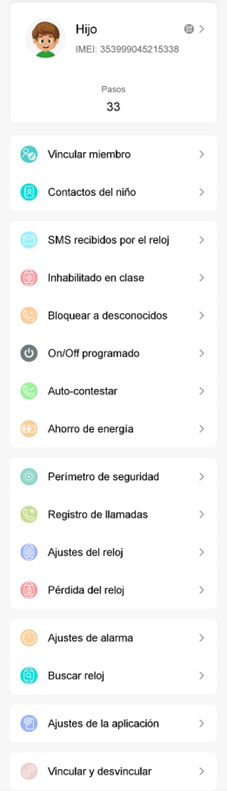 Contiene informazioni di base sull'orologio e sul bambino: Nome, foto, IMEI, numero di telefono dell'orologio, Codice QR dell'orologio, versione del firmware, Genere, Compleanno, Livello di istruzione.:
