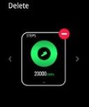 Scorrendo da destra a sinistra, troverai le schermate del dispositivo fornite per impostazione predefinita: Telefono, Passi, Assistente, Frequenza cardiaca, Ossigeno nel sangue, Meteo. Cliccando su Aggiungi (+), puoi aggiungere nuove schermate. Se vuoi eliminare una schermata, tieni premuto e clicca sull'icona (-).