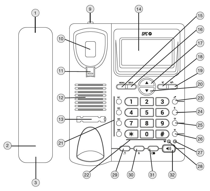 6. Tasti di selezione del tipo di chiamata (multifrequenza o decimale), M / D