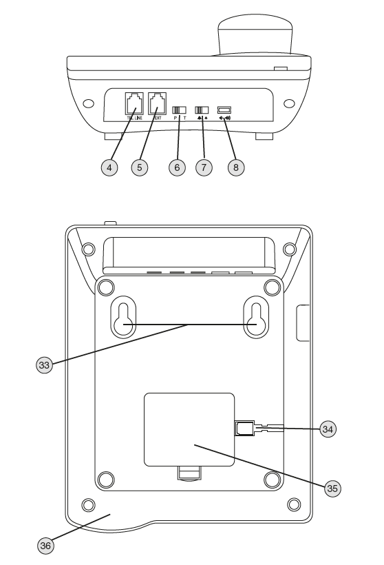 4. Alloggiamento per cavo linea principale, TEL. LINEA