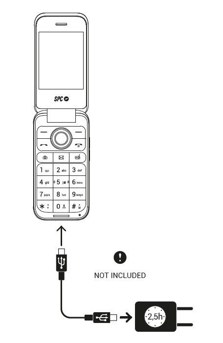Collega l'adattatore incluso nella confezione a una qualsiasi presa di corrente della tua casa. Inserisci l'altra estremità del caricatore nel connettore di ricarica del telefono.