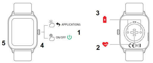 Una pressione prolungata accende o spegne l'orologio. Una volta acceso, una pressione breve accende o spegne lo schermo. All'interno di un menu, premi brevemente per uscire dal menu e tornare alla schermata principale o per mettere in pausa/riprendere l'attività sportiva in corso.