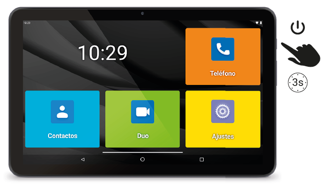 Per accendere GRAVITY 3 4G, premi il tasto per 3 secondi che troverai nella parte in alto a destra del tablet.