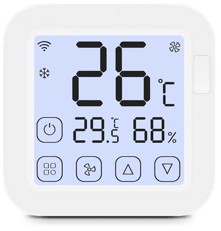 - No dispositivo: No lado inferior esquerdo do ecrã encontra-se o botão de modo. Quando primes esse botão, os modos mudam entre Frio, Calor, Automático, Ventilador e Seco/Desumidificador.