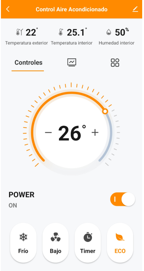- Na app: No lado inferior esquerdo do painel de controlo vês o modo atual. Quando primes esse botão, abres um menu onde podes selecionar entre os modos Frio, Calor, Automático, Ventilador e Desumidificador.