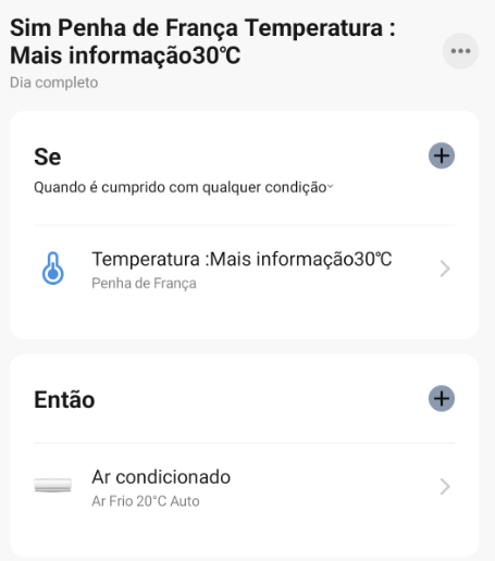 Ex.: Se a temperatura em Lisboa for superior a 30º, liga o ar condicionado nos 20º no modo Frio, Velocidade automática.