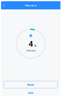 Exibe a vida útil prevista do filtro de ar e lembra-te sobre efetuar uma limpeza periódica.