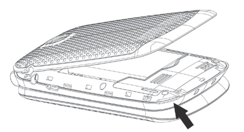 Levanta a tampa da bateria utilizando a aba situada na parte inferior do telefone, junto aos contactos de carga.