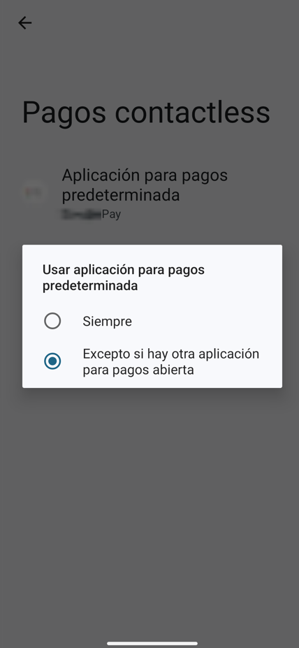 Neste caso, vai a Definições -> Dispositivos conectados -> Preferências de conexão -> NFC -> Pagamentos contactless -> Aplicação para pagamentos predefinida e seleciona a aplicação que usarás por defeito (Google Pay ou a app do teu banco); assim que for selecionada, retrocede e na opção Usar aplicação para pagamentos predefinida seleciona a opção "Exceto se houver outra aplicação para pagamentos aberta".