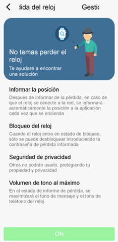 Ao desativar a função na aplicação, termina-se a função de relatório de perda do relógio e volta ao estado de funcionamento normal.