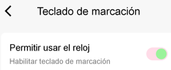 Permite desabilitar o teclado de marcação do relógio. Por defeito é permitido. Se desativado, desaparece no relógio a opção do teclado em Chamadas.