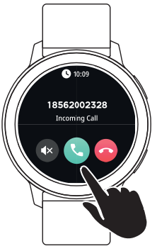 Ao receber uma chamada, o relógio notificará na tela, com som e vibração (de acordo com as configurações), e você poderá atender diretamente no relógio.