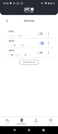 Note que cada wearable tem um número máximo de alarmes suportados, portanto, a aplicação não permitirá que ultrapasse esse limite.