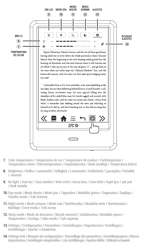 O DICKENS LIGHT 2 PRO tem um sistema de controlo da luz de fundo que se adapta ao teu nível de conforto na leitura. O controlo atua sobre a intensidade e o tom da luz de fundo.