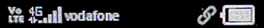 À esquerda, pode aparecer o símbolo de conexão VoLTE (dependendo do operador), seguido por um conjunto de barras que indicam o nível de cobertura móvel e a tecnologia de conexão (4G, 3G, 2G), o nome do operador móvel ao qual o relógio está ligado, um ícone de conexão e um ícone de bateria com o nível de carga.