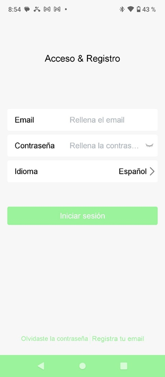 - Após o ecrã de apresentação, aparece o ecrã de início de sessão e registo. No ecrã de registo, será pedido o teu email e uma palavra-passe para iniciar sessão (caso já estejas registado) ou para criar uma conta (novo utilizador).