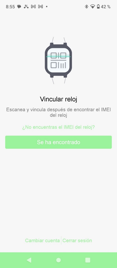 - De seguida, aparece um ecrã que explica como encontrar o código associado ao IMEI do relógio, necessário para o emparelhar. Quando for mostrado o código QR do relógio, seleciona “Foi encontrado” para abrir a câmara e fazer a leitura. Se o QR não for detetado, podes introduzir manualmente o código (10 caracteres alfanuméricos).