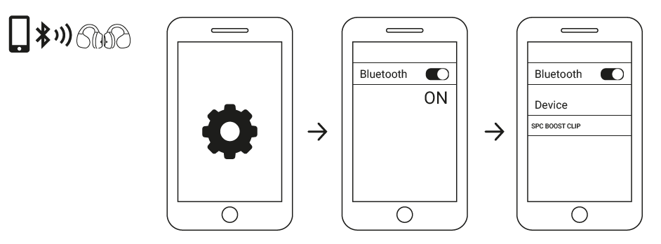 Através de um reprodutor de música com uma conexão Bluetooth (smartphone, tablet, computador…), poderás ouvir a tua música nos teus SPC BOOST CLIP.