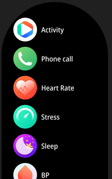 Esta é a disposição das primeiras funcionalidades acessíveis no relógio: