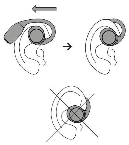 Não tem de os introduzir no seu canal auditivo. Tem de os colocar na parte superior: