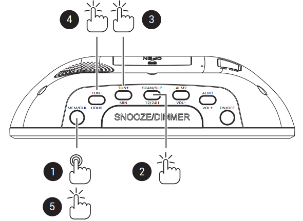 - Em modo STANDBY (hora no ecrã), mantém premida a tecla MEM/CLK até os dígitos começarem a piscar.